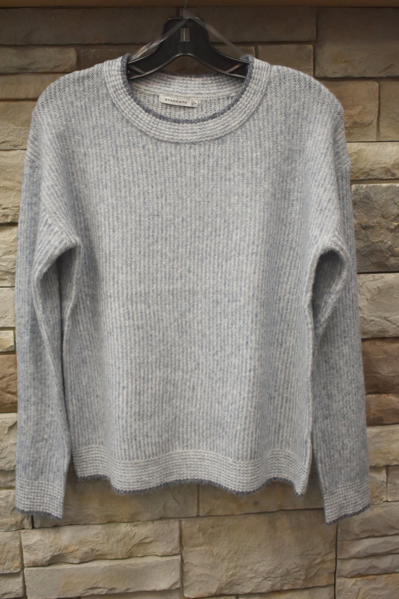 Stay effortlessly stylish and comfortable in the Bramford Pullover Sweater. This lightweight piece features a beautiful light blue marled rib design and a classic crew neck, making it perfect for layering or wearing on its own. Its soft fabric ensures all-day comfort, while the subtle texture adds a refined touch to any outfit.