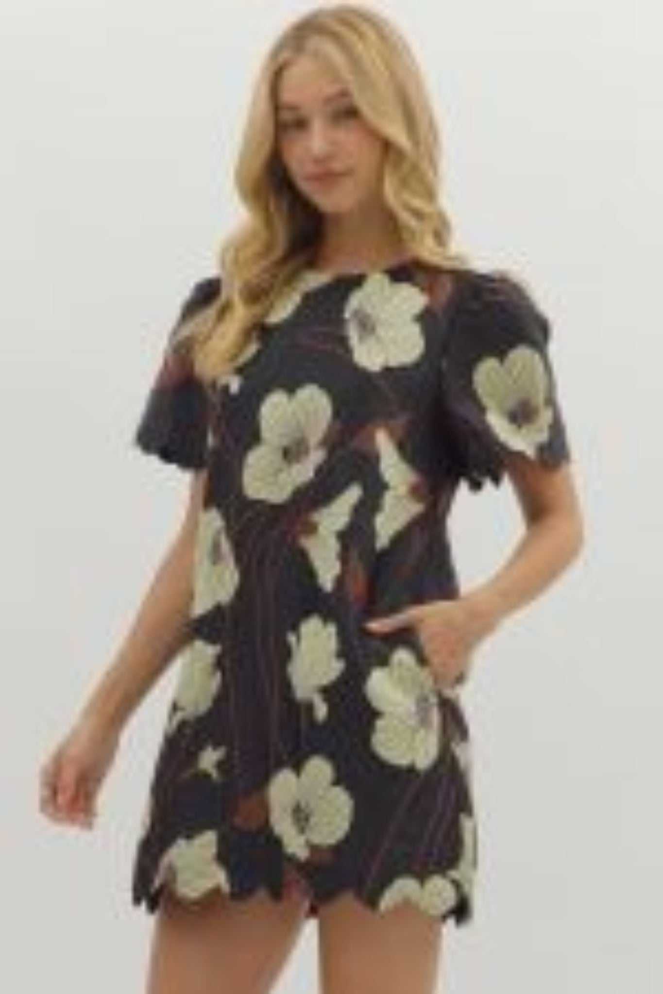 The Zosia Floral Mini Dress combines delicate jacquard floral patterns with a flattering short sleeve silhouette. Crafted from lightweight, woven fabric that’s fully lined and non-sheer, this dress ensures comfortable wear and confidence all day. A scalloped hem adds a feminine finish, while side pockets bring practical charm. The zipper closure at the back allows for easy dressing, making Zosia your go-to piece for effortless style and versatility.