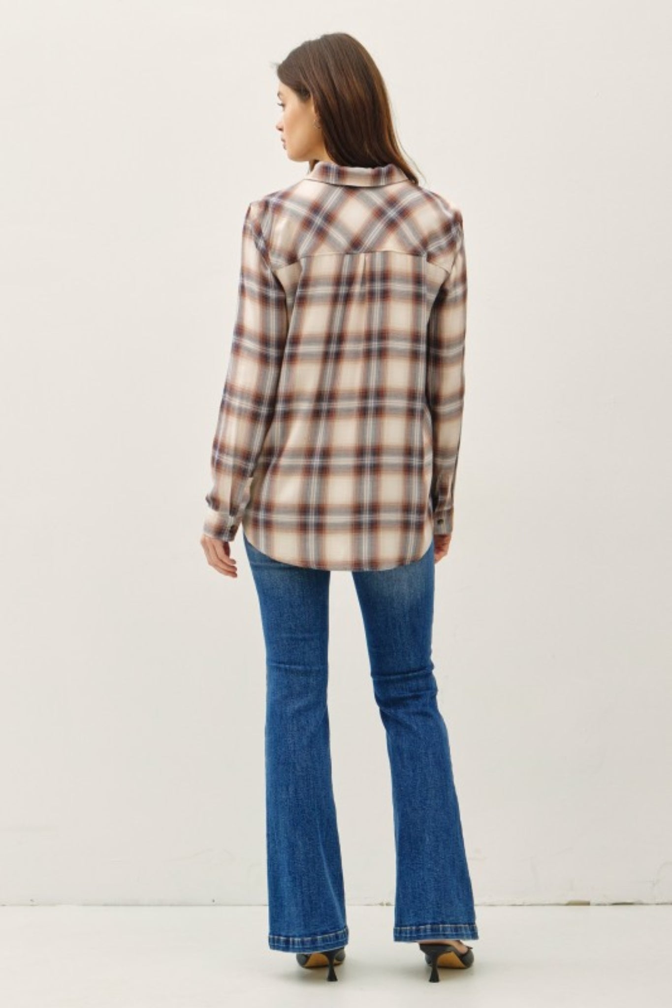 Embrace timeless style with the Esther Plaid Flannel Button Down Top. This classic wardrobe essential features a traditional plaid pattern in a comfortable long-sleeve design that transitions seamlessly from season to season. The structured button-up front and convenient chest pocket deliver both functionality and authentic vintage appeal. Perfect for layering or wearing solo, this versatile flannel top pairs effortlessly with jeans, skirts, or trousers for an effortlessly put-together look that never goes out of style.