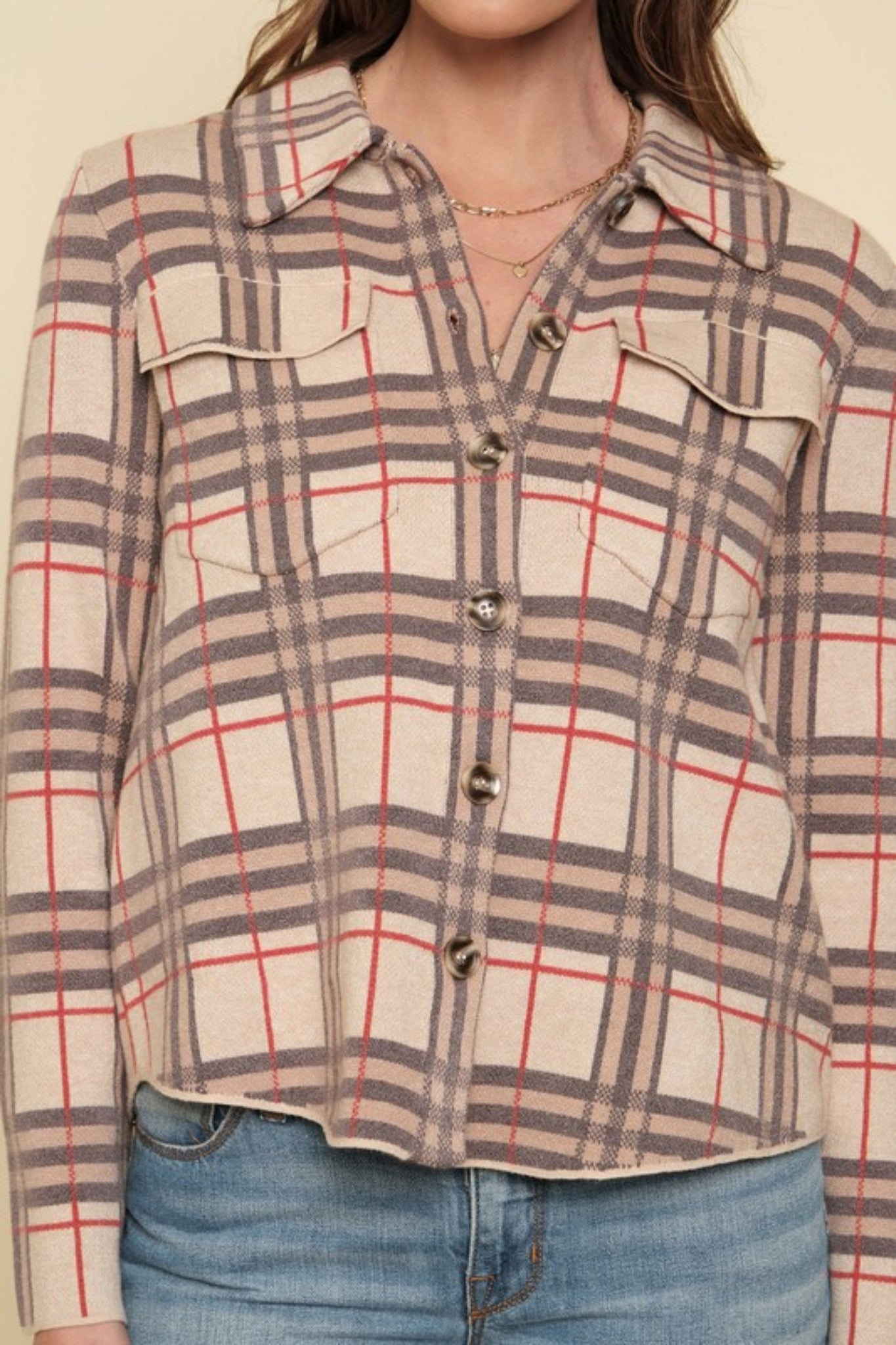 Stay stylish and warm this winter with the Faith Check Patterned Sweater Jacket. Versatile enough for any occasion, this jacket features a cozy check pattern, button-up front, and flap pockets. Dress up or down with ease.