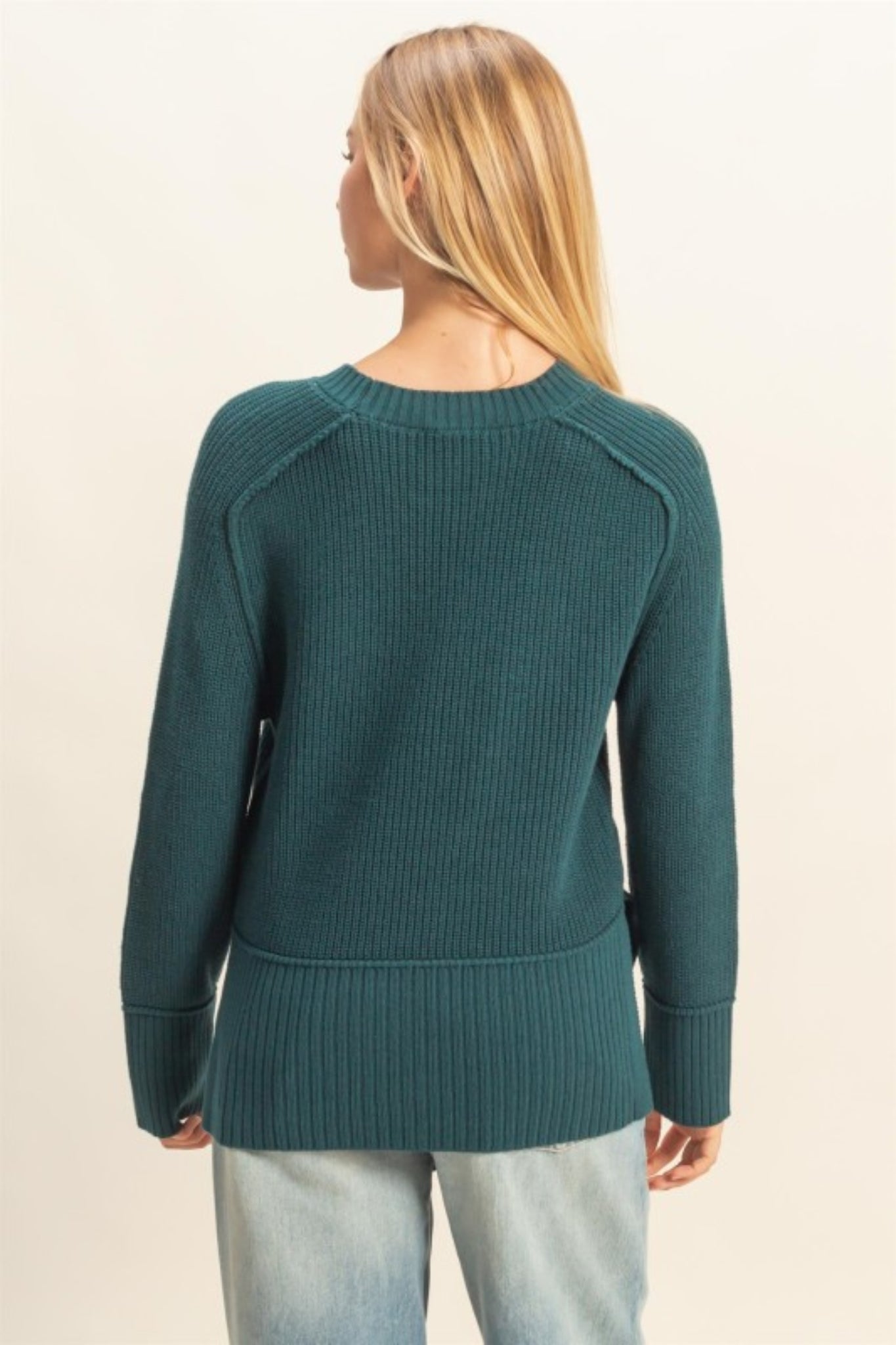 Elevate your wardrobe with the Kaylani Pullover Sweater in a rich deep green. Designed with wide bands at the bottom and sleeves, it offers a flattering fit that stays comfortably in place all day. Its cozy fabric and stylish silhouette make it perfect for layering or wearing on its own, combining comfort and elegance effortlessly. Make the Kaylani your go-to for a polished yet relaxed look.