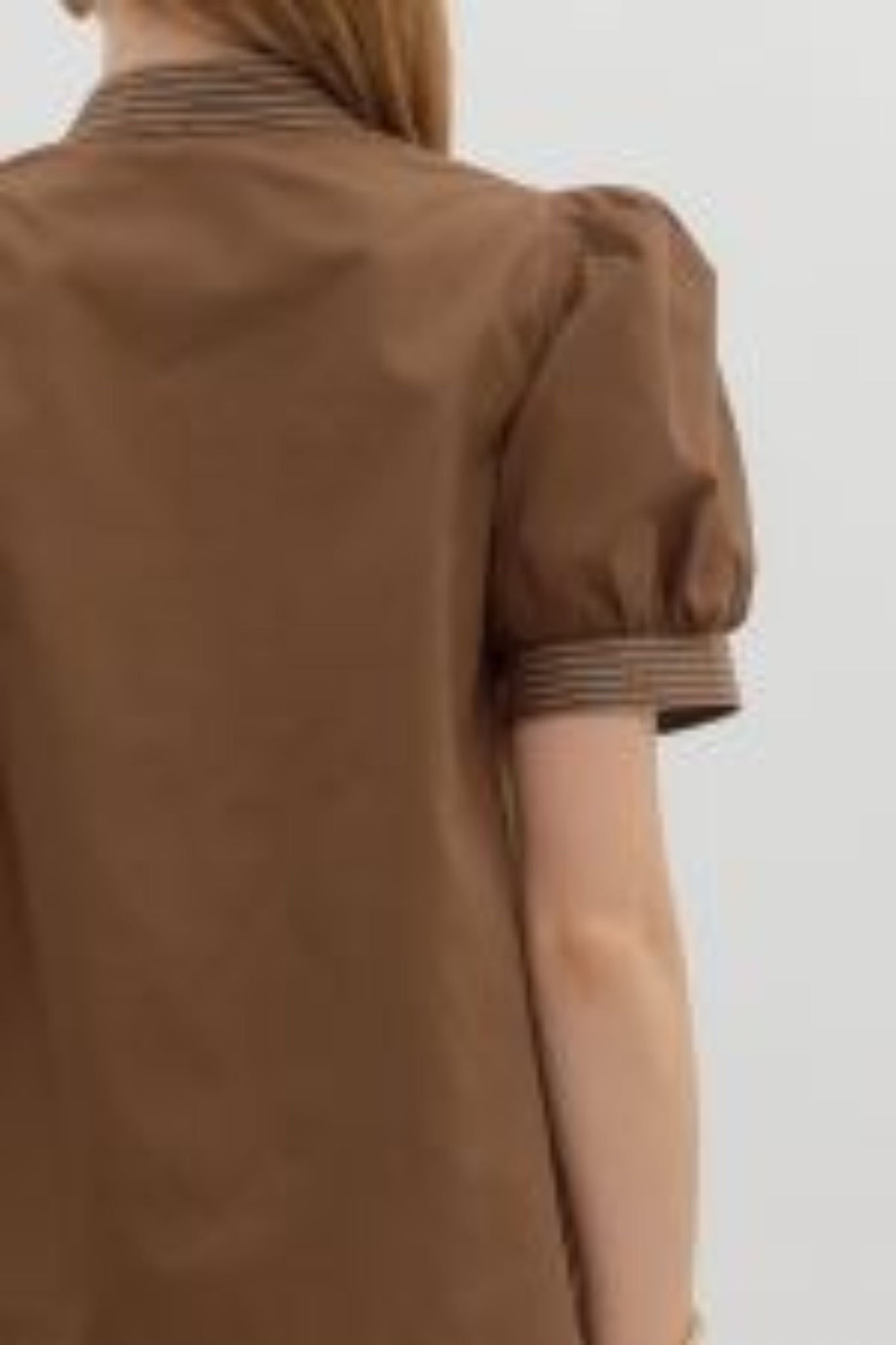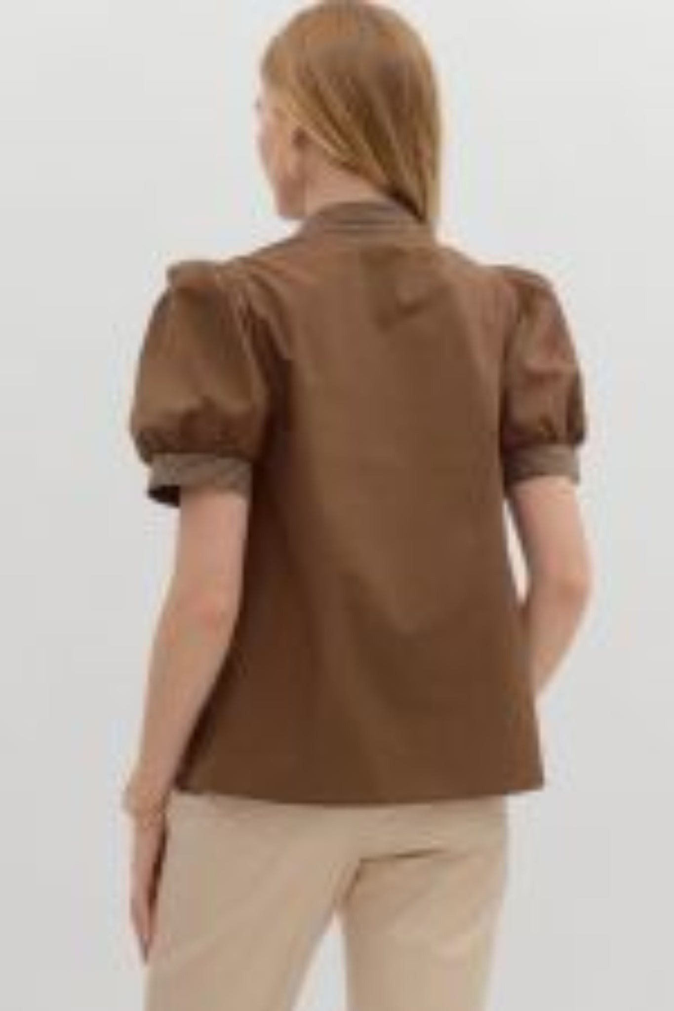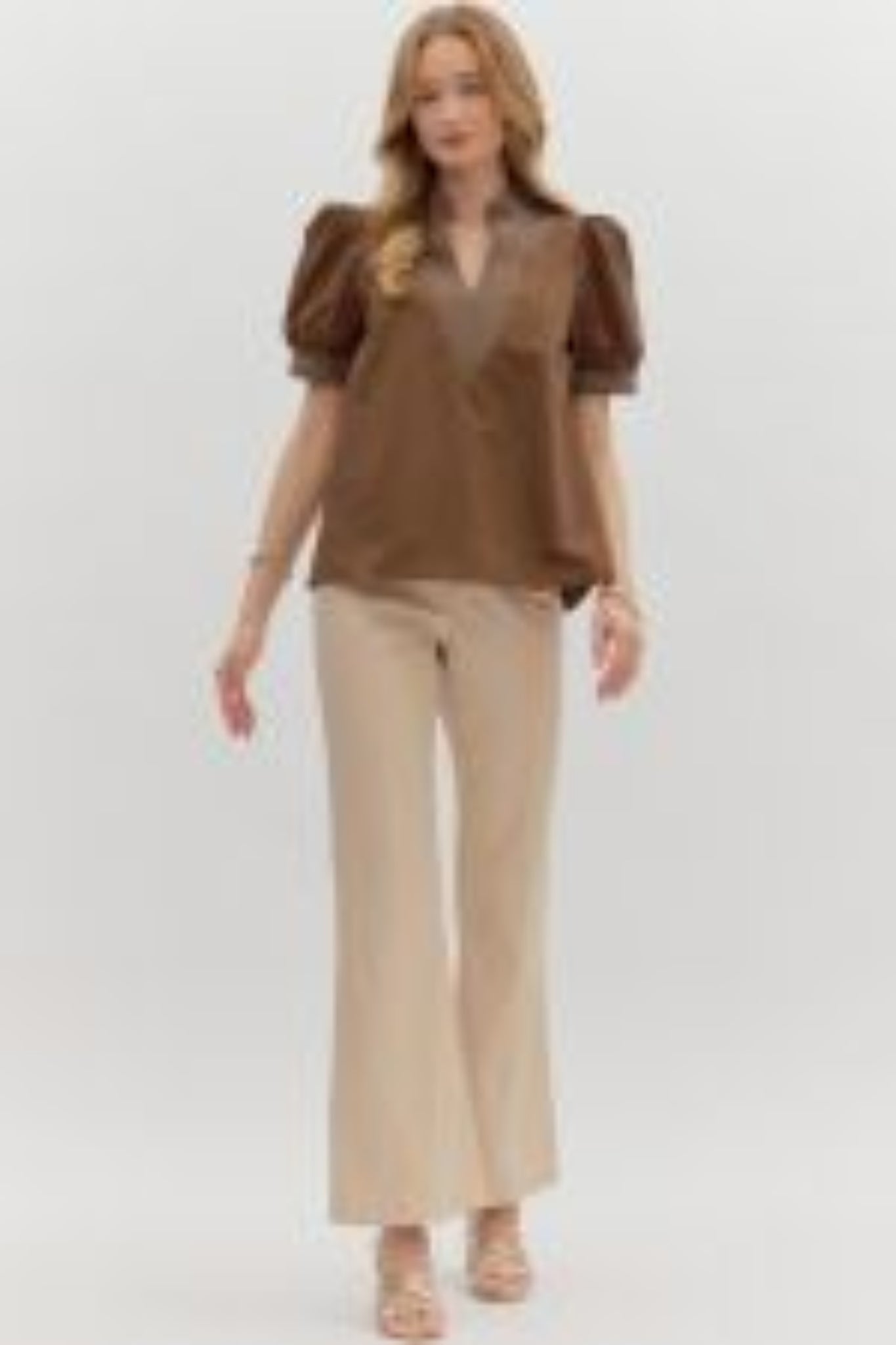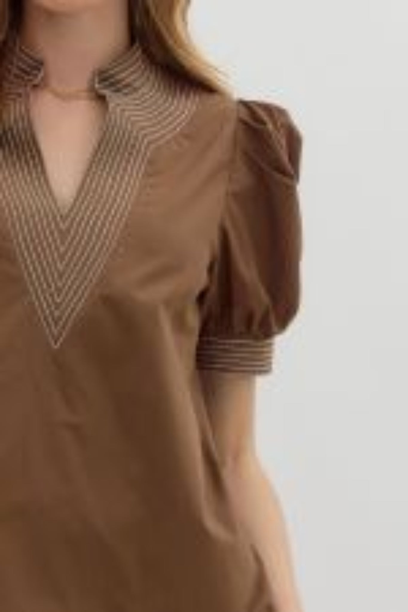 The Peyton V-Neck Top combines elegant puff sleeves with a flattering V-neckline for a stylish silhouette. Crafted from lightweight, woven fabric that’s non-sheer and unlined, it offers breathable comfort all day long. Distinct contrast accent stitch detailing adds subtle sophistication, making this top a versatile choice to elevate both casual and dressy looks.