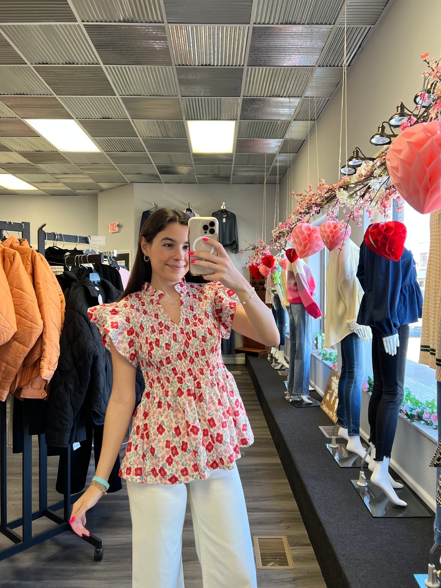 Elevate your wardrobe with the Rylee Floral Top, a charming piece that combines effortless style with thoughtful design details. This lightweight woven top features a delicate floral print that brings natural beauty to any outfit, while the smocked bodice creates a flattering silhouette. Flutter sleeves add a romantic touch, and the ruffled neckline draws attention upward with feminine flair. Unlined and non-sheer, this top offers comfortable wear throughout the day without compromising on coverage. Perfect for spring outings, casual gatherings, or layering into your favorite looks, the Rylee delivers versatile elegance that transitions seamlessly from day to evening.