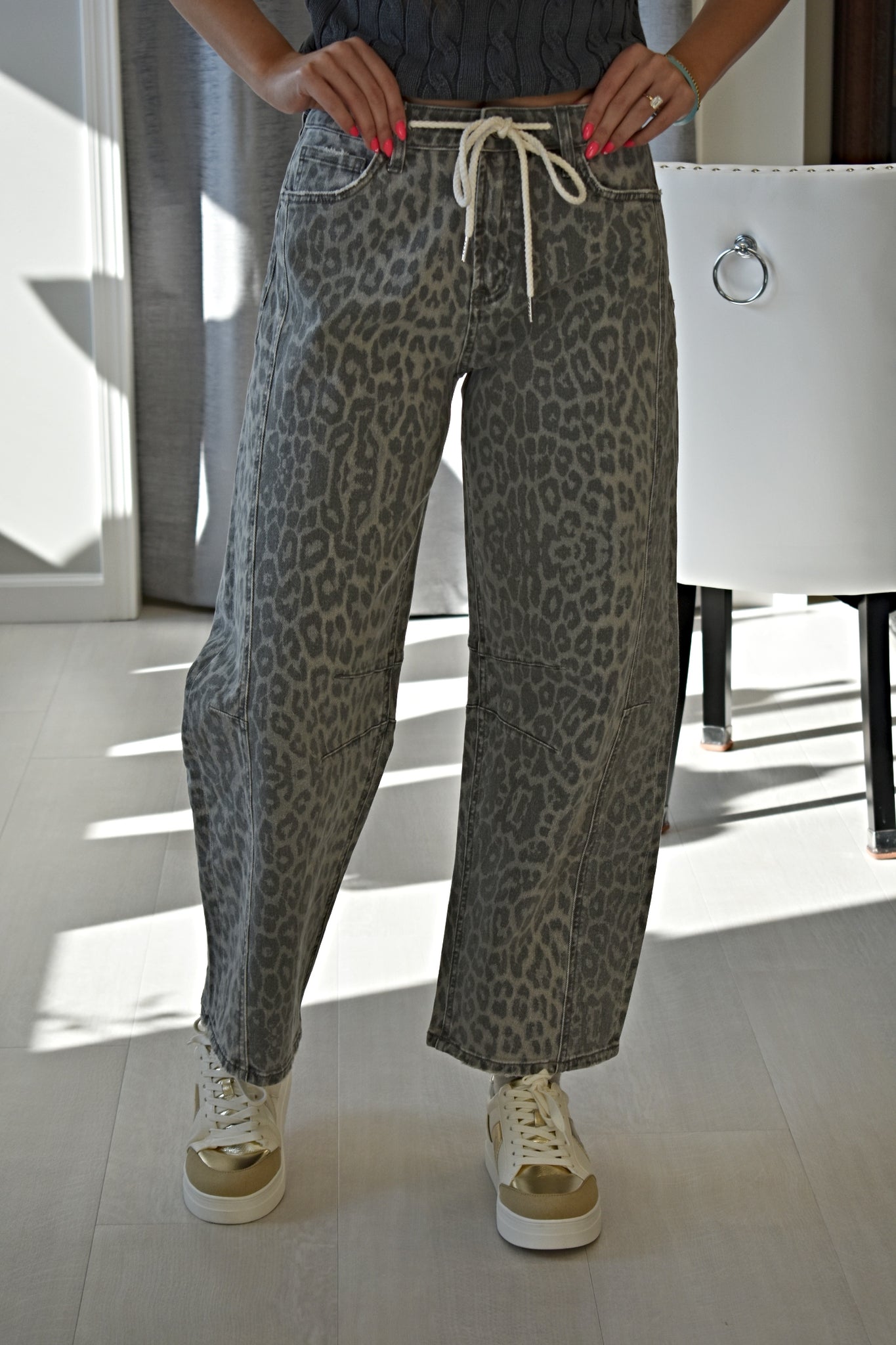 Elevate your denim game with the Selah High Rise Barrel Jeans, featuring a bold leopard print that commands attention. The high-rise cut flatters your silhouette while the relaxed barrel leg offers modern comfort and effortless style. Perfect for making a statement, these jeans transition seamlessly from casual outings to night-out looks. The eye-catching animal print adds personality to any outfit, while the classic denim construction ensures durability and lasting wear. Embrace confidence in a pair that celebrates individuality and contemporary fashion.