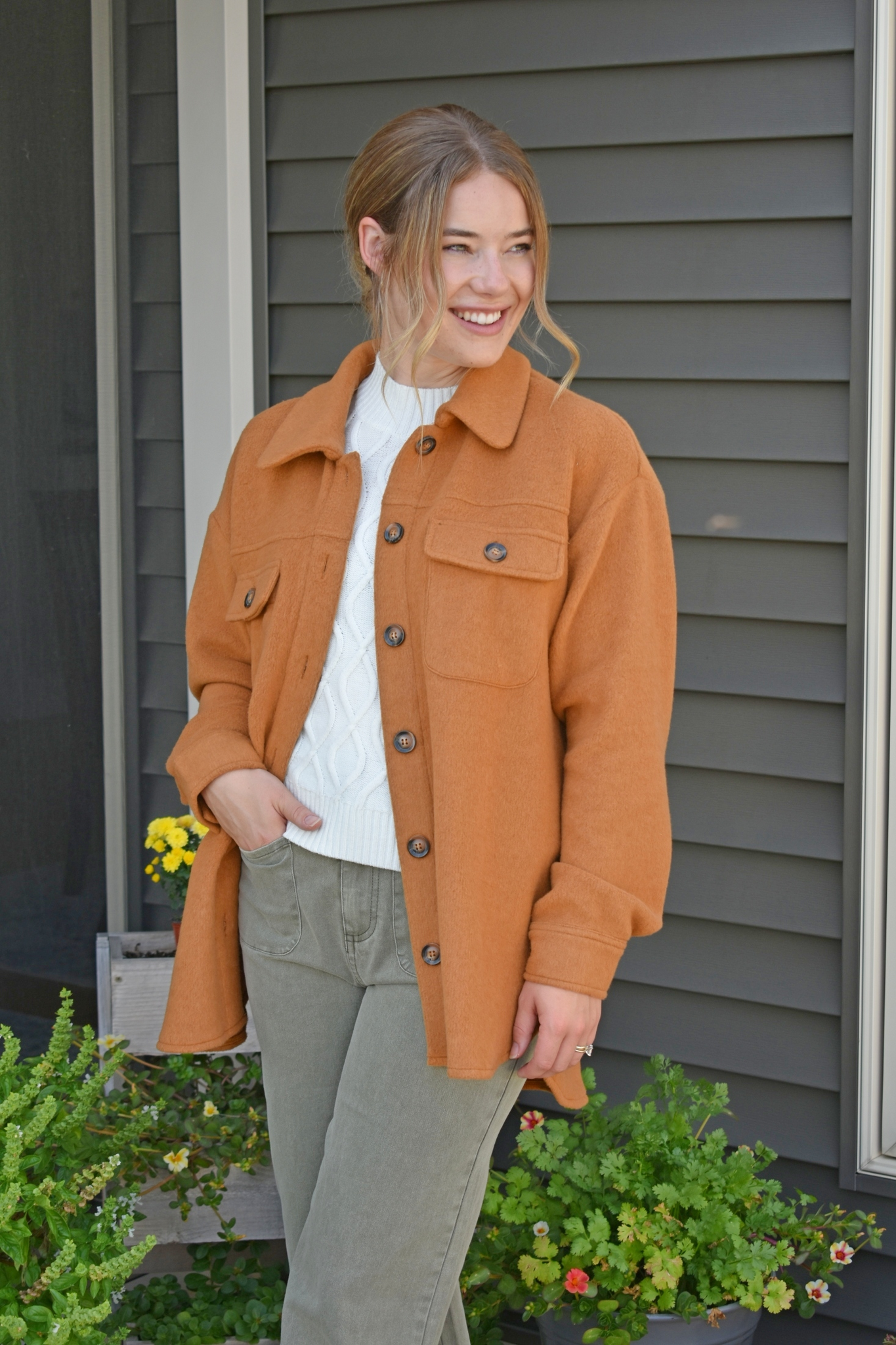 The Shiloh Fleece Shacket combines cozy warmth with effortless style. Crafted from a soft blend of 85% polyester and 15% spandex, it offers comfortable stretch and durability. Featuring a button-down front and convenient patch pockets, this shacket is perfect for layering on chilly days while keeping essentials close at hand. Elevate your casual wardrobe with this versatile, easy-to-wear piece designed to keep you comfortable and stylish.