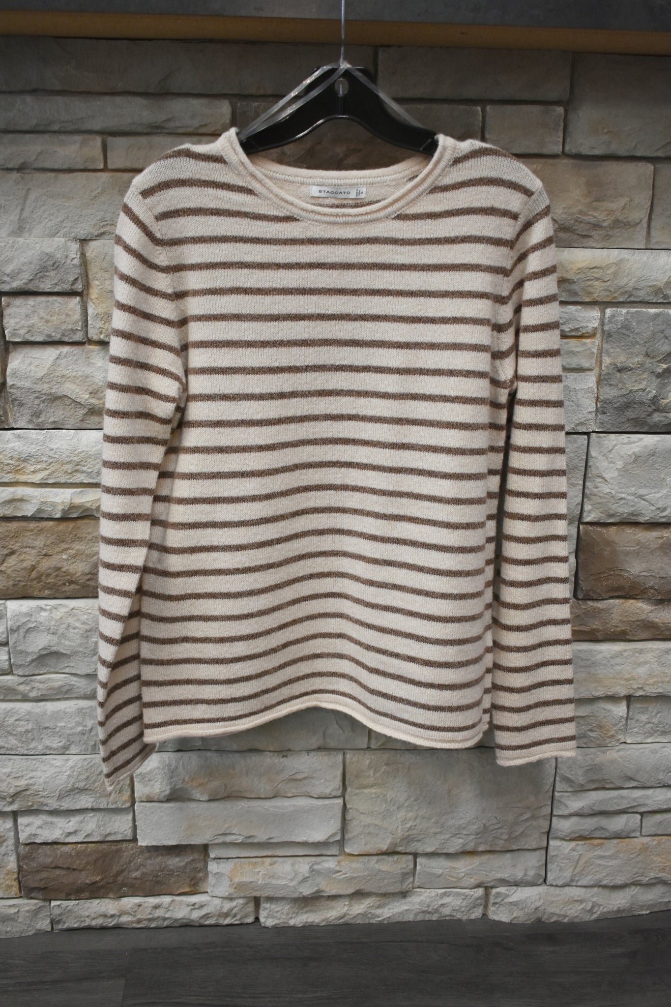 Stay stylish and comfortable with the Melody Striped Crew Neck Sweater. Crafted from a soft polyester and spandex blend, it offers a perfect fit with gentle stretch. Its classic crew neck and timeless stripe pattern make it ideal for layering under a vest or jacket, adding warmth without bulk. Elevate your wardrobe with this versatile piece designed to keep you cozy and confident all season long.