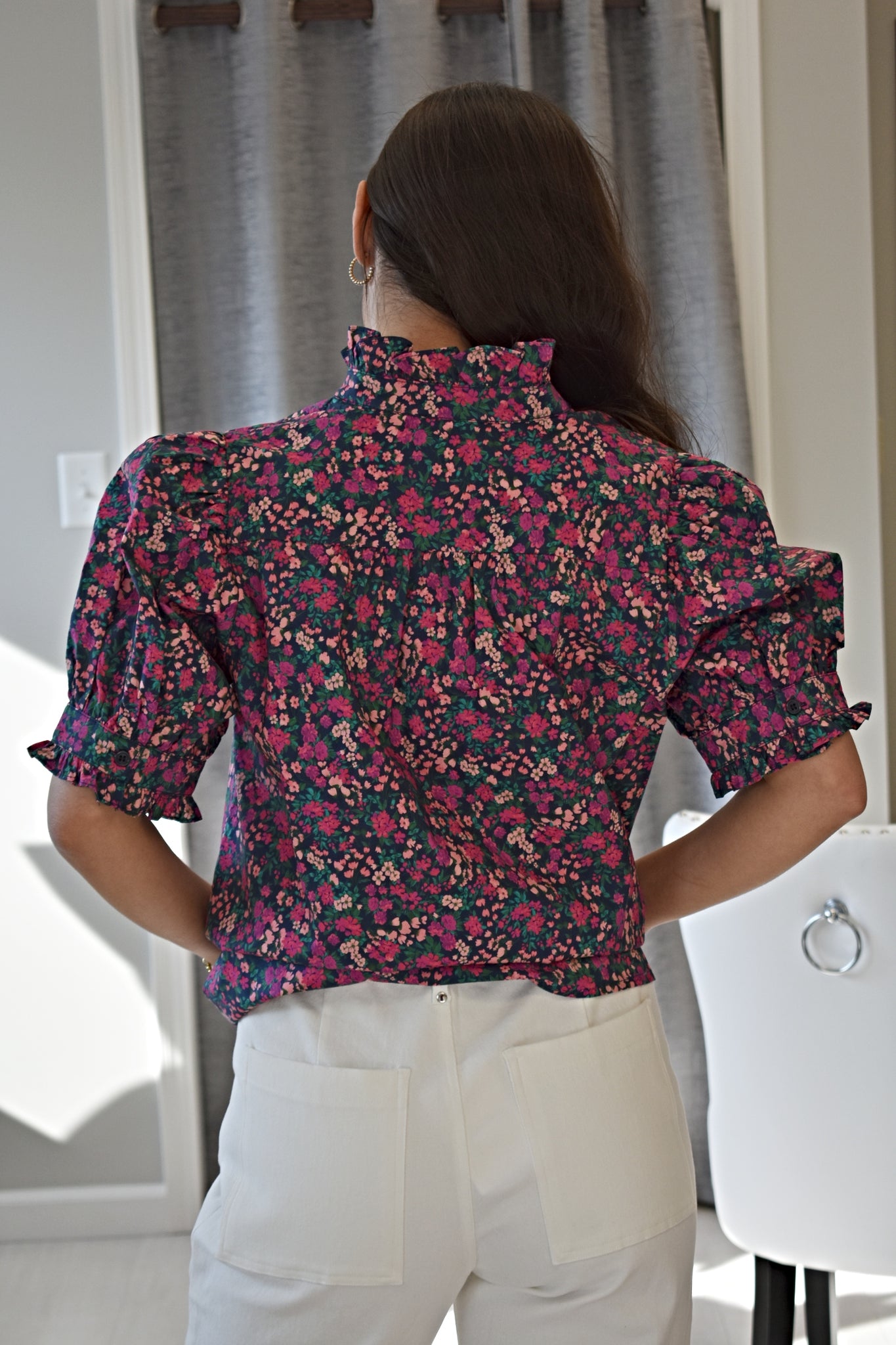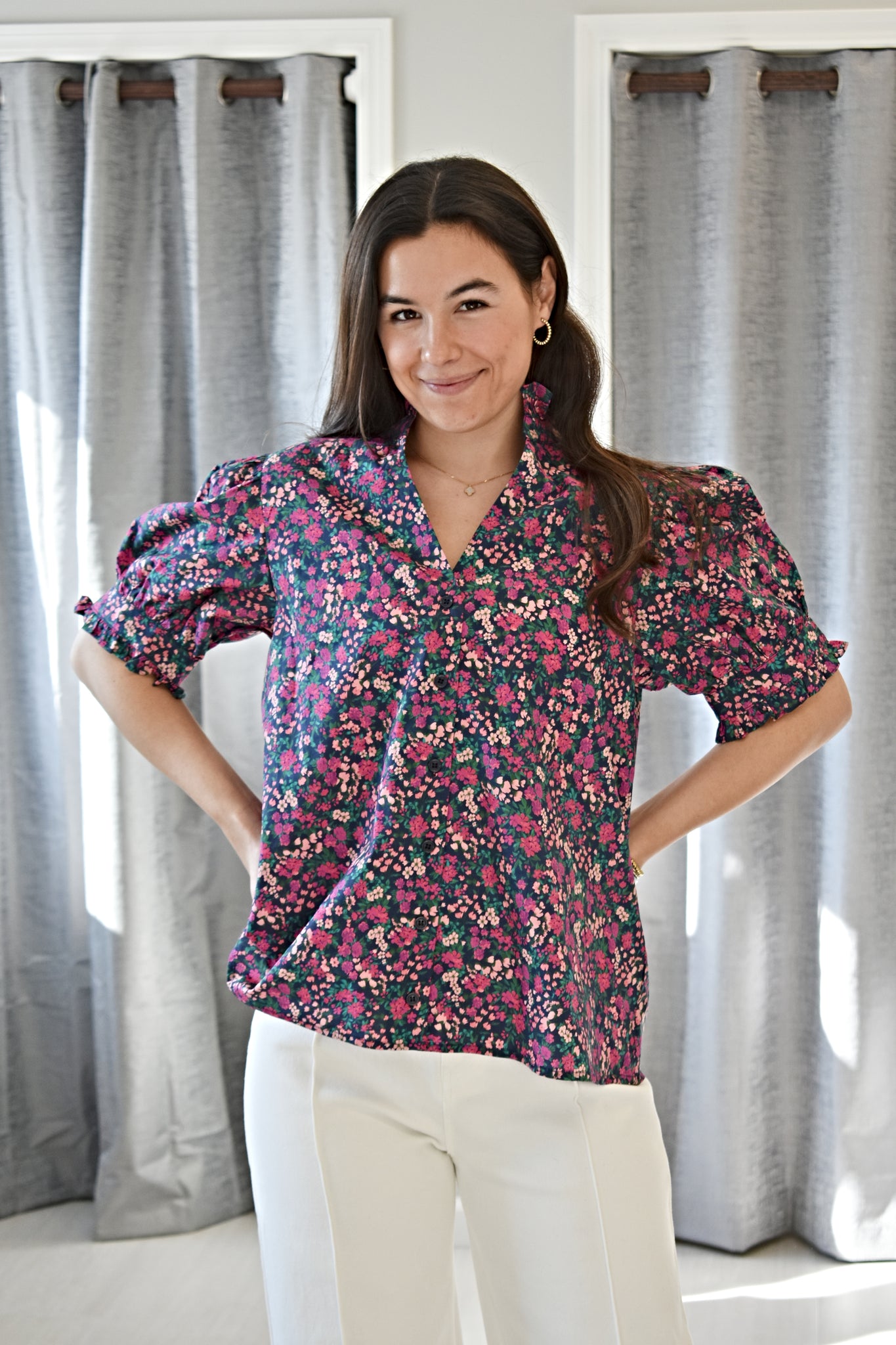 Elevate your everyday wardrobe with the Selena Flower Top, a charming piece that effortlessly blends style and sophistication. This v-neck button-down features a delicate floral print that brings natural beauty to any outfit. The puff sleeves add a touch of romantic flair, while decorative button details and ruffled accents at the neckline and sleeves create visual interest and dimension. Perfect for dressing up or down, this short-sleeve top is designed to make you feel confident and put-together, whether you're heading to the office or out for a casual weekend adventure.